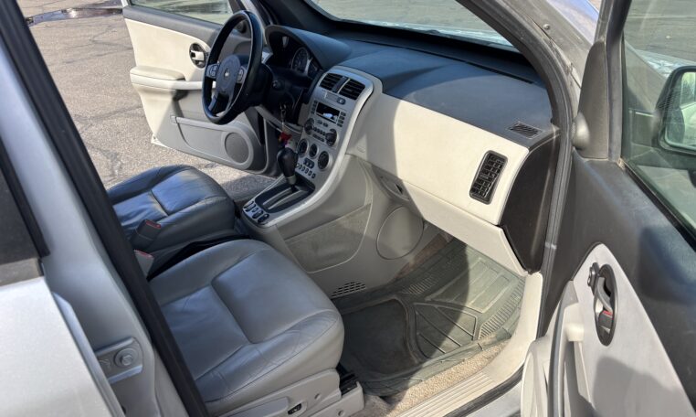 This 2005 Chevrolet Equinox LT AWD is a well-equipped all-wheel-drive SUV powered by a 3.4L V6 engine paired with a 5-speed automatic transmission. Finished in Aubergine Metallic with LT Gray leather interior, this Equinox offers dependable year-round capability at an affordable price point. With 172,466 miles, it shows typical wear consistent with age and mileage and is priced accordingly.