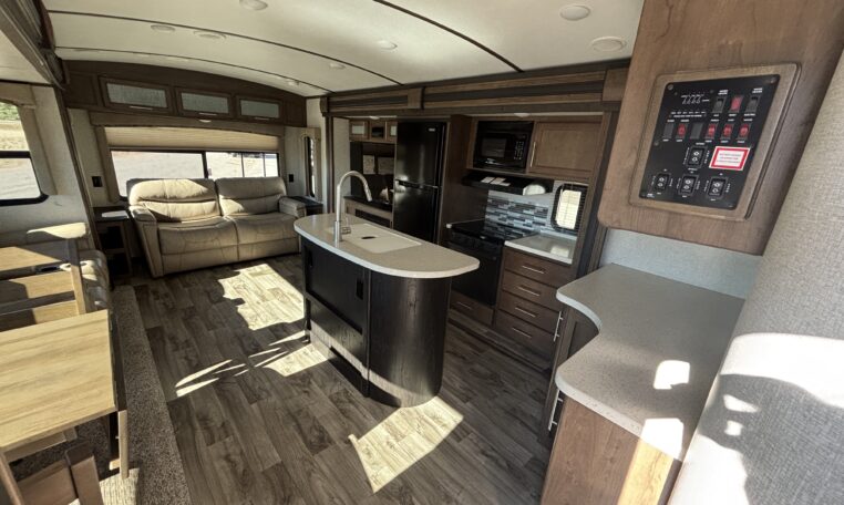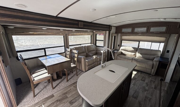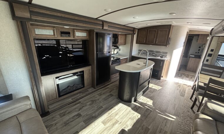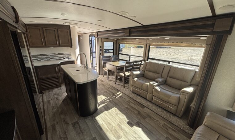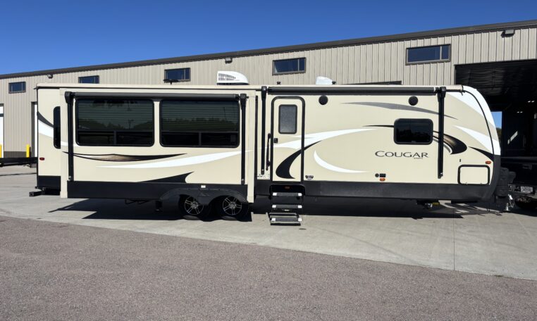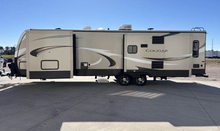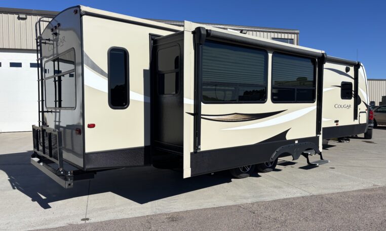 This 2018 Cougar 32RLI is one of the cleanest rear-living travel trailers available today. As a 20th Anniversary Edition, it offers upgraded construction, extended-season insulation, and a spacious triple-slide layout designed for comfort.