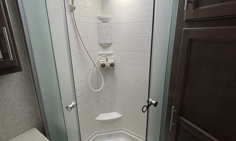 - Radius glass shower w/ skylight
