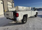 This 2019 Chevrolet Silverado 2500HD WT is a work truck equipped with the 6.0L Vortec V8, 6L90 heavy-duty automatic transmission, 4.10 locking rear differential, and the factory Z82 trailering package. It features an extended cab with a long box, dual Weather Guard toolboxes, and a Tommy Gate hydraulic lift rated for 1,500 lbs. The truck includes power windows and locks, cruise control, a backup camera, and durable vinyl flooring. A solid commercial-use truck suitable for construction, delivery, agriculture, and service operations.