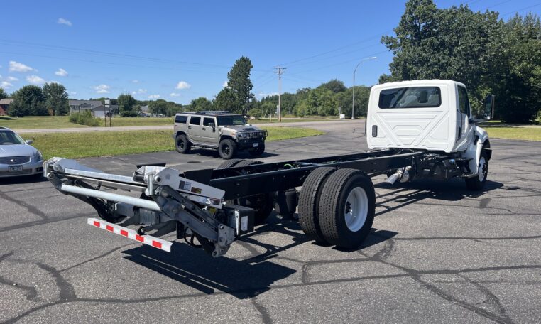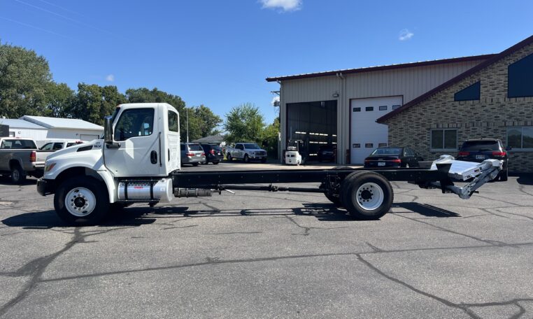 This 2024 International MV-607 Cab & Chassis is a clean, low-mileage, non-CDL truck powered by a Cummins B6.7 turbo diesel engine paired with an Allison automatic transmission. Professionally upfitted with a Maxon electric-hydraulic tuck-under liftgate, this truck is ready for delivery, box truck, or service applications. Smooth-running drivetrain, excellent mechanical condition, and ideal for regional or local use.
